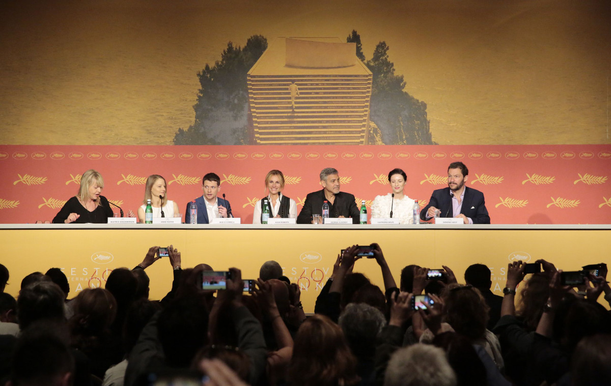 Foule de journalistes pour accueillir l’équipe de Jodie Foster. La réalisatrice qui présente Money Monster Hors Compétition s’est entourée de ses cinq acteurs à l’occasion de la conférence de presse du film : Julia Roberts, George Clooney, Dominic West, Caitriona Balfe et Jack O’Connell. Après The Beaver (Le Complexe du castor), Jodie Foster est de retour à Cannes avec un thriller dans lequel un animateur télé est pris en otage en plein direct. Casting, dimensions politique et financière, scènes de danse loufoques, retrouvez les thèmes abordés durant la conférence de presse dans cette vidéo.